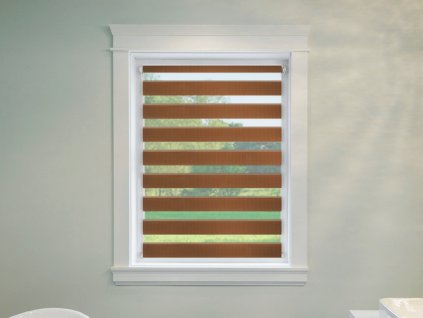 Zatemňující okenní roleta Den a noc se vyrábí v délce 150 cm, 220 cm nebo 240 cm a v šířce 30 cm až 240 cm. Roletu dodáme včetně mechanismu pro ovládání řetízku o délce 1 m nebo 1,5 m a kompletní sady pro upevnění.